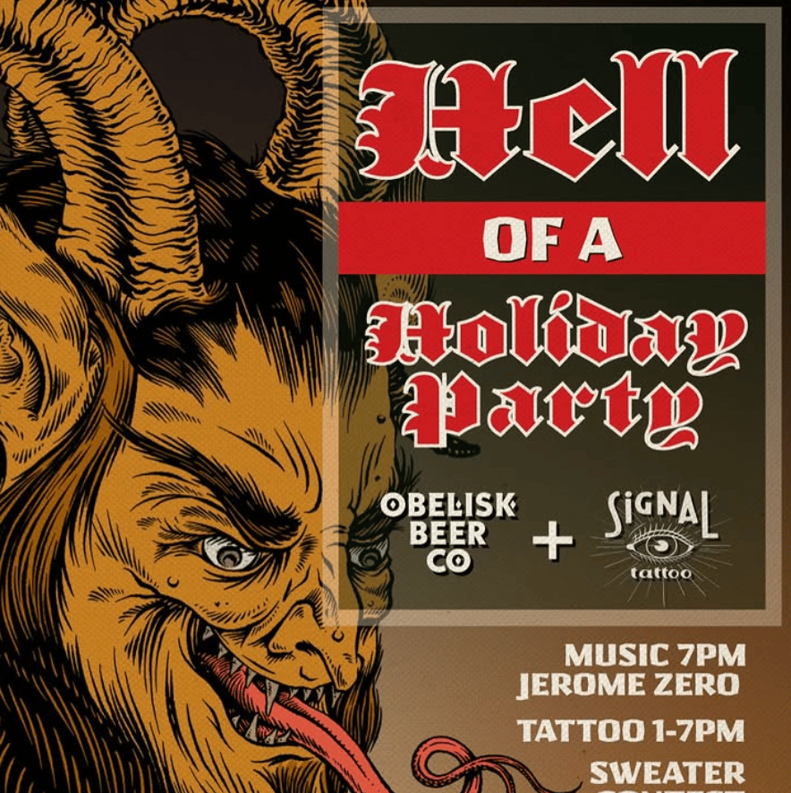 Join Obelisk for tattoos, new beers on tap, a fun drink special, live music, and their hallowed and highly revered ugly sweater contest this Sat, Dec 20.