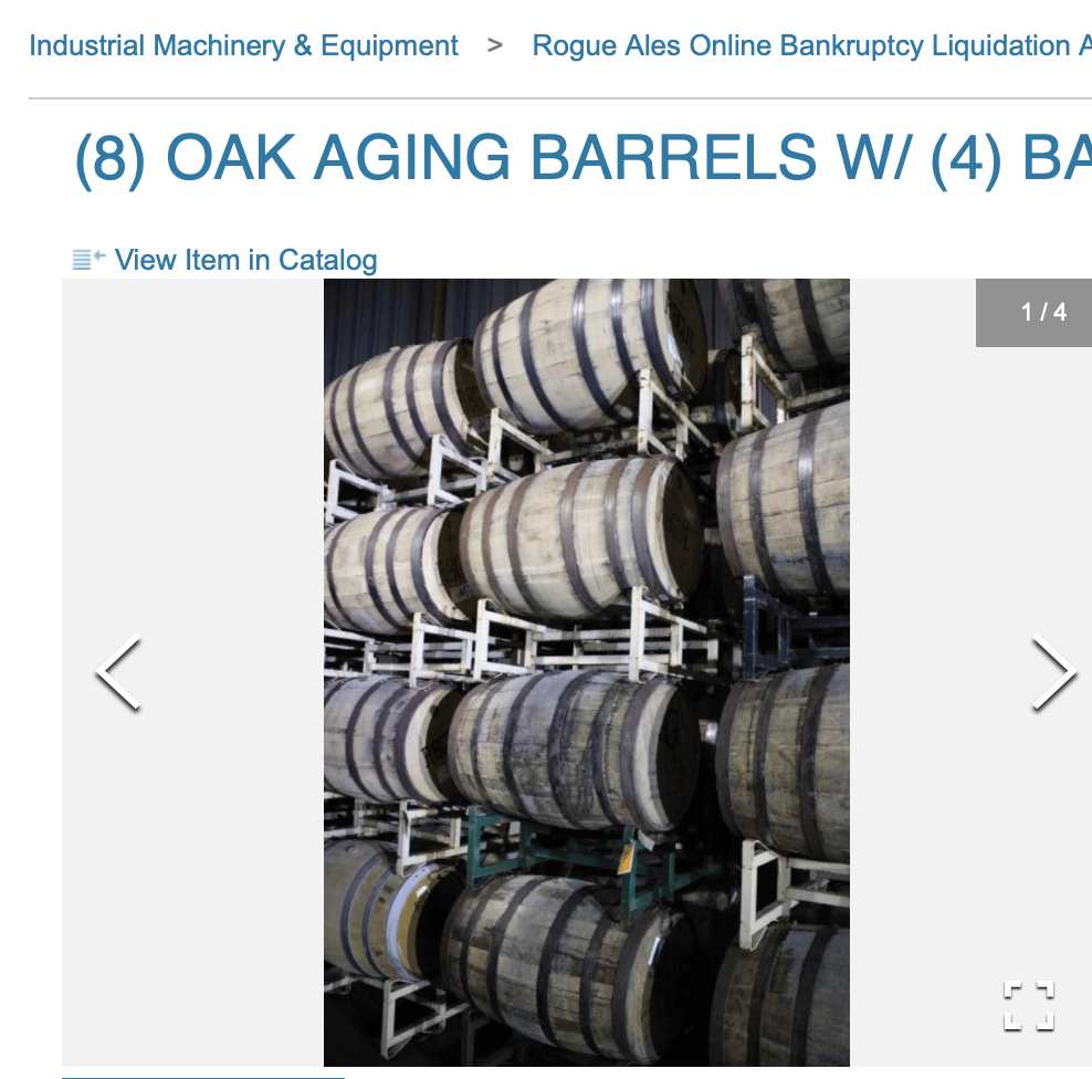 Rogue's bankruptcy liquidation sale will begin this week, with 800 items for sale including the brewery, tanks, pallets of ingredients, barrels, and literally everything Rogue owned.